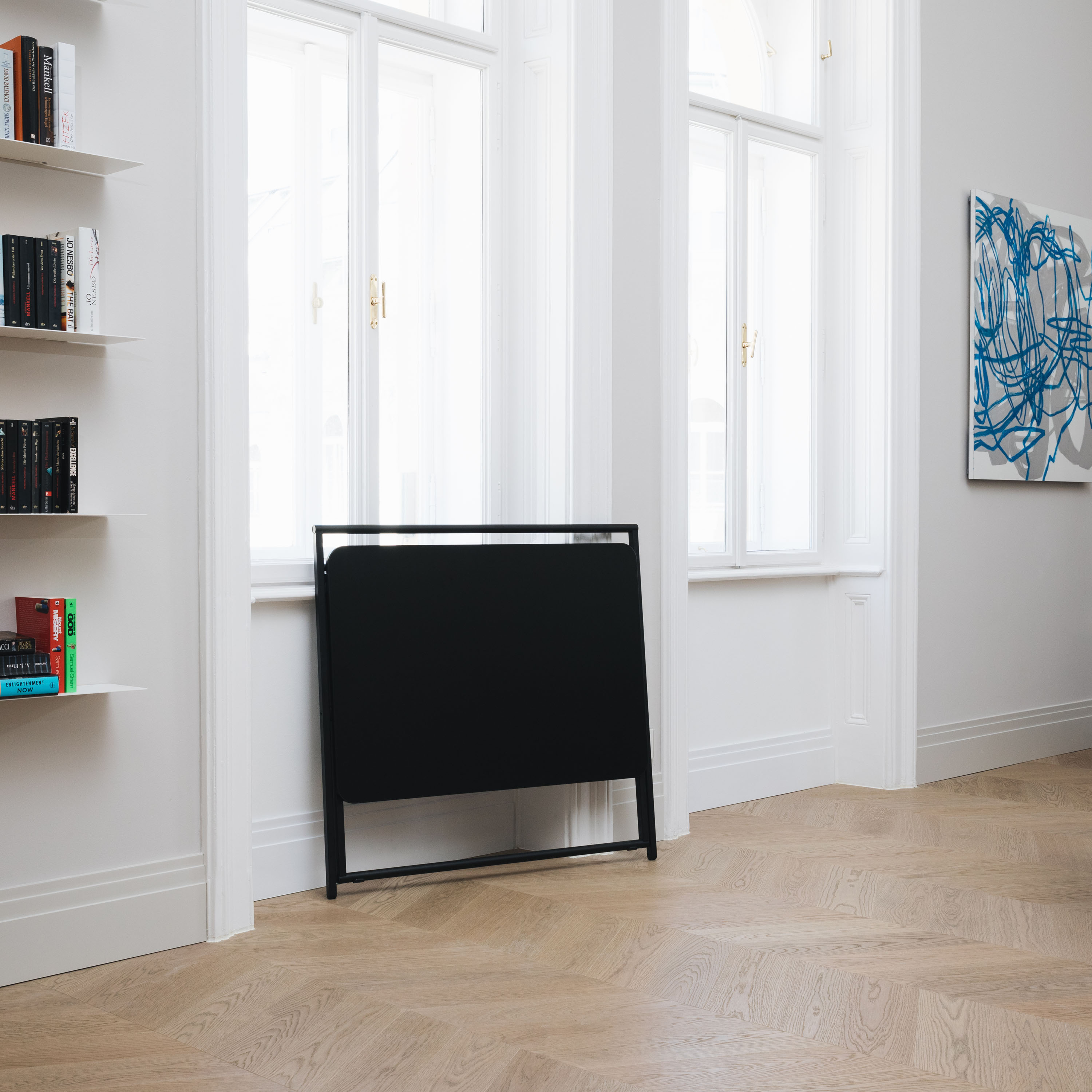 Praktisch: Das Ablagenetz nimmt Kabel oder Kleinteile sowohl im aufgestellten als auch im zusammengeklappten Zustand auf. Nach getaner Arbeit klappst du X-PRESS flach zusammen (nur ~44 mm) und verstaust ihn platzsparend. Erhältlich in vielen Oberflächen (Melamin oder Furnier) und Gestellfarben – passend zu deinem Setting. Kurz: aufklappen, arbeiten, wegstellen.